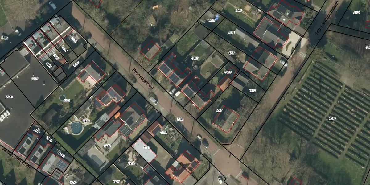 Het perceel waarop Proosdijstraat 4 staat heeft een oppervlakte van 984 m². Dit is een groot perceel. De perceeloppervlakte wordt geregistreerd door het Kadaster. Gedetailleerde informatie over de maten van dit perceel kunt u vinden in het rapport Kadastrale kaart met maatvoering van Proosdijstraat 4.