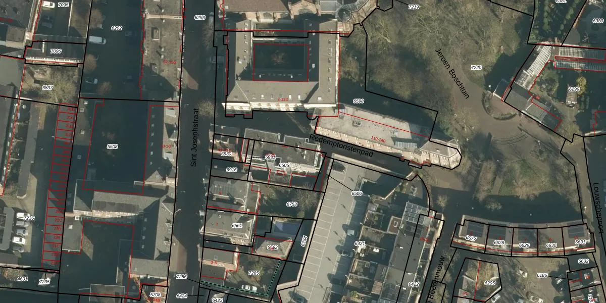 Redemptoristenpad 11 is gelegen op kadastraal perceel HTG00H6505. Deze kadastrale aanduiding is uniek en wordt gebruikt door het Kadaster om eigendomsrechten en andere zakelijke rechten vast te leggen. Het perceel maakt onderdeel uit van de kadastrale gemeente 's-Hertogenbosch.