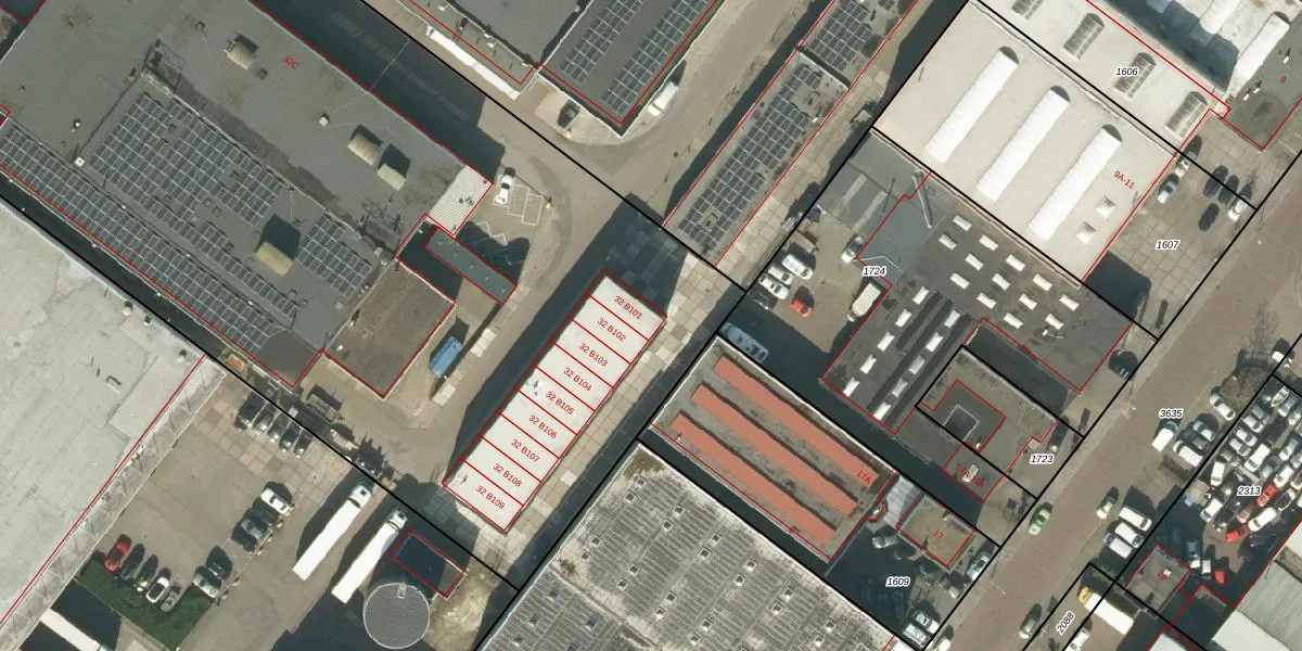 Het perceel waarop Rietveldenweg 32-B-101 staat heeft een oppervlakte van 1,3 ha. Dit is een zeer groot perceel. De perceeloppervlakte wordt geregistreerd door het Kadaster. Gedetailleerde informatie over de maten van dit perceel kunt u vinden in het rapport Kadastrale kaart met maatvoering van Rietveldenweg 32-B-101.