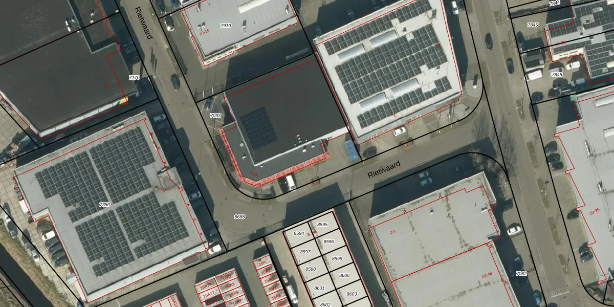 Het perceel waarop Rietwaard 9 staat heeft een oppervlakte van 1578 m². Dit is een zeer groot perceel. De perceeloppervlakte wordt geregistreerd door het Kadaster. Gedetailleerde informatie over de maten van dit perceel kunt u vinden in het rapport Kadastrale kaart met maatvoering van Rietwaard 9.