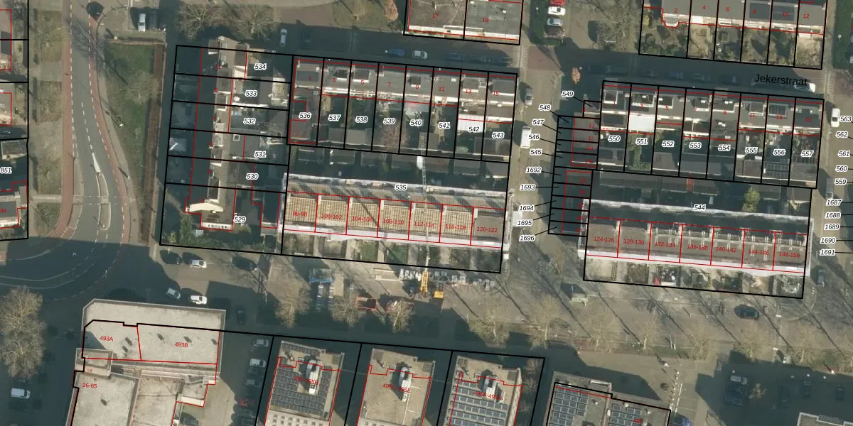 Het perceel waarop Rijnstraat 114 staat heeft een oppervlakte van 1336 m². Dit is een zeer groot perceel. De perceeloppervlakte wordt geregistreerd door het Kadaster. Gedetailleerde informatie over de maten van dit perceel kunt u vinden in het rapport Kadastrale kaart met maatvoering van Rijnstraat 114.