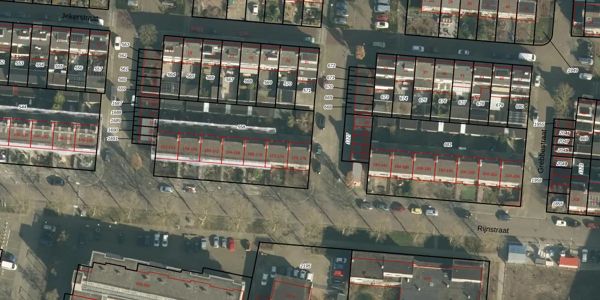 Rijnstraat 178 is gelegen op kadastraal perceel HTG00D558. Deze kadastrale aanduiding is uniek en wordt gebruikt door het Kadaster om eigendomsrechten en andere zakelijke rechten vast te leggen. Het perceel maakt onderdeel uit van de kadastrale gemeente 's-Hertogenbosch.