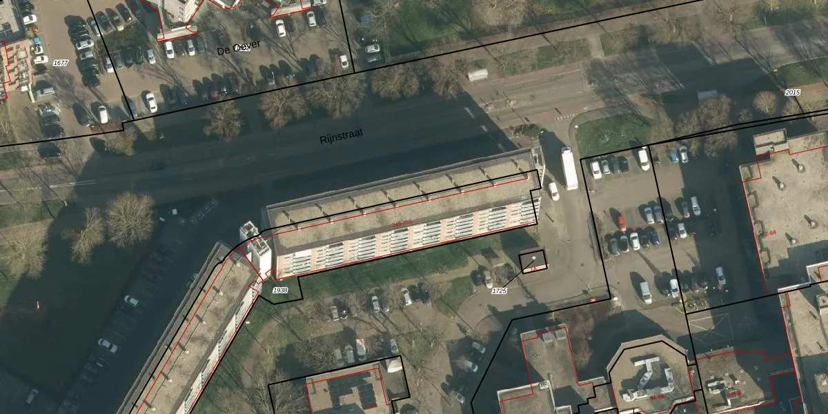 Het perceel waarop Rijnstraat 251 staat heeft een oppervlakte van 2821 m². Dit is een zeer groot perceel. De perceeloppervlakte wordt geregistreerd door het Kadaster. Gedetailleerde informatie over de maten van dit perceel kunt u vinden in het rapport Kadastrale kaart met maatvoering van Rijnstraat 251.