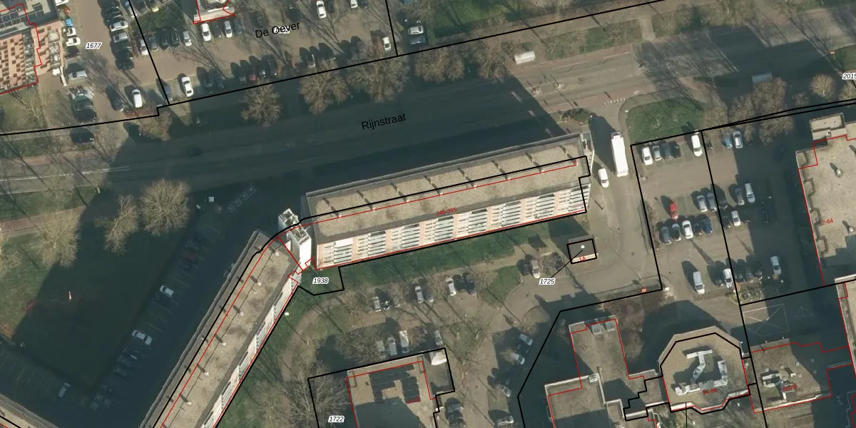 Het perceel waarop Rijnstraat 285 staat heeft een oppervlakte van 2821 m². Dit is een zeer groot perceel. De perceeloppervlakte wordt geregistreerd door het Kadaster. Gedetailleerde informatie over de maten van dit perceel kunt u vinden in het rapport Kadastrale kaart met maatvoering van Rijnstraat 285.