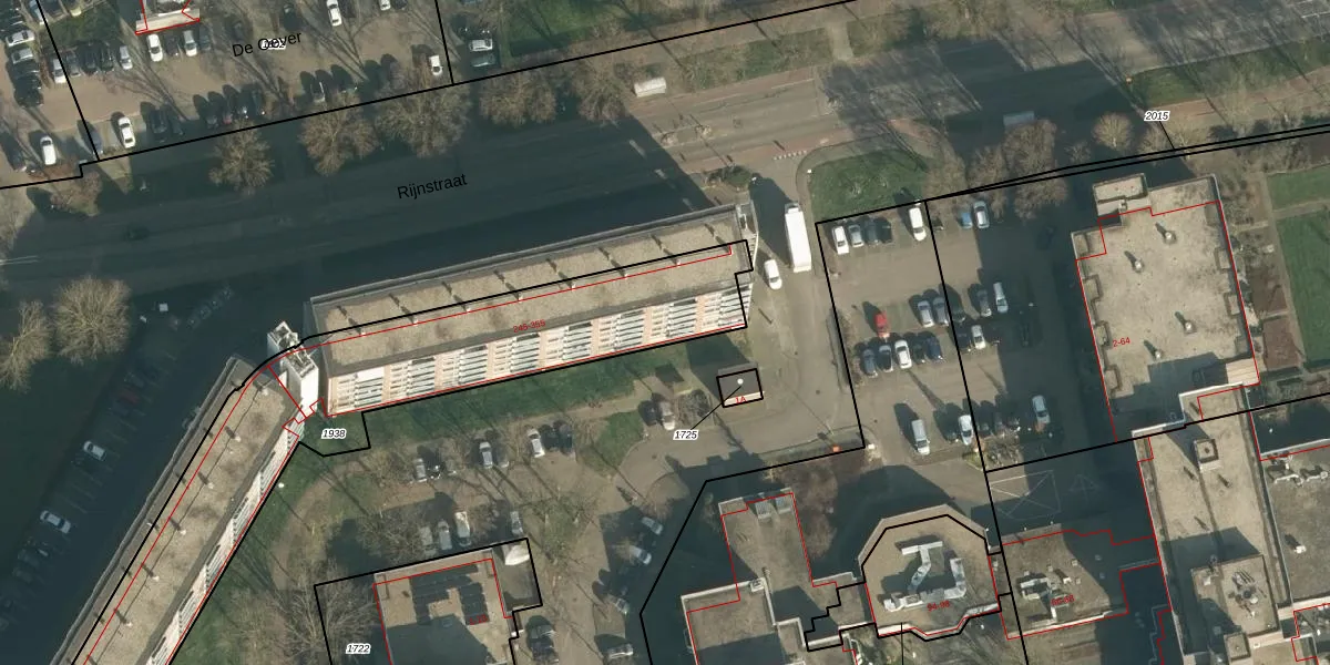 Het perceel waarop Rijnstraat 343 staat heeft een oppervlakte van 2821 m². Dit is een zeer groot perceel. De perceeloppervlakte wordt geregistreerd door het Kadaster. Gedetailleerde informatie over de maten van dit perceel kunt u vinden in het rapport Kadastrale kaart met maatvoering van Rijnstraat 343.