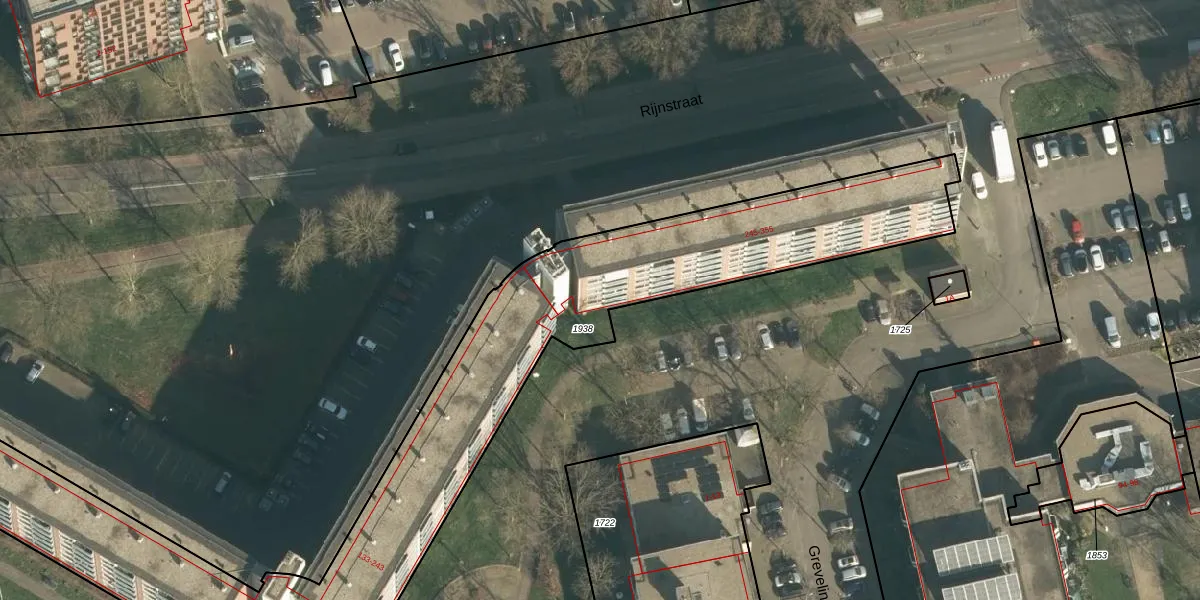 Het perceel waarop Rijnstraat 355 staat heeft een oppervlakte van 2821 m². Dit is een zeer groot perceel. De perceeloppervlakte wordt geregistreerd door het Kadaster. Gedetailleerde informatie over de maten van dit perceel kunt u vinden in het rapport Kadastrale kaart met maatvoering van Rijnstraat 355.