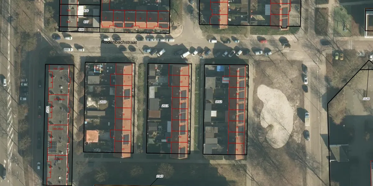 Het perceel waarop Rodenbachstraat 21 staat heeft een oppervlakte van 1140 m². Dit is een zeer groot perceel. De perceeloppervlakte wordt geregistreerd door het Kadaster. Gedetailleerde informatie over de maten van dit perceel kunt u vinden in het rapport Kadastrale kaart met maatvoering van Rodenbachstraat 21.