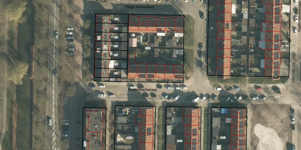 Het perceel waarop Rodenbachstraat 6 staat heeft een oppervlakte van 1668 m². Dit is een zeer groot perceel. De perceeloppervlakte wordt geregistreerd door het Kadaster. Gedetailleerde informatie over de maten van dit perceel kunt u vinden in het rapport Kadastrale kaart met maatvoering van Rodenbachstraat 6.