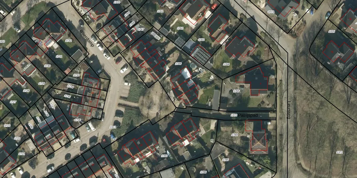 Het perceel waarop Roerdomp 55 staat heeft een oppervlakte van 1397 m². Dit is een zeer groot perceel. De perceeloppervlakte wordt geregistreerd door het Kadaster. Gedetailleerde informatie over de maten van dit perceel kunt u vinden in het rapport Kadastrale kaart met maatvoering van Roerdomp 55.