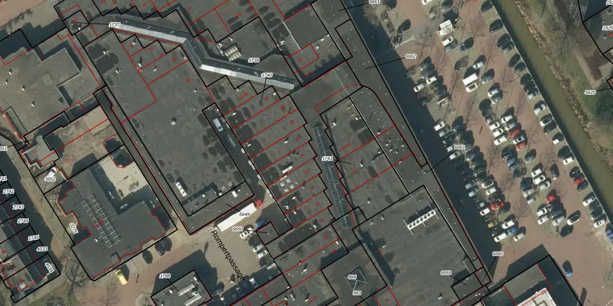 Het perceel waarop Rompertpassage 34 staat heeft een oppervlakte van 2555 m². Dit is een zeer groot perceel. De perceeloppervlakte wordt geregistreerd door het Kadaster. Gedetailleerde informatie over de maten van dit perceel kunt u vinden in het rapport Kadastrale kaart met maatvoering van Rompertpassage 34.