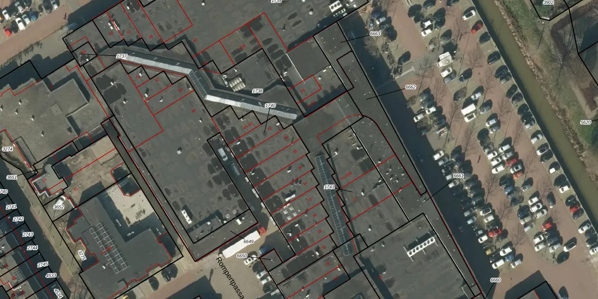 Het perceel waarop Rompertpassage 38 staat heeft een oppervlakte van 2555 m². Dit is een zeer groot perceel. De perceeloppervlakte wordt geregistreerd door het Kadaster. Gedetailleerde informatie over de maten van dit perceel kunt u vinden in het rapport Kadastrale kaart met maatvoering van Rompertpassage 38.