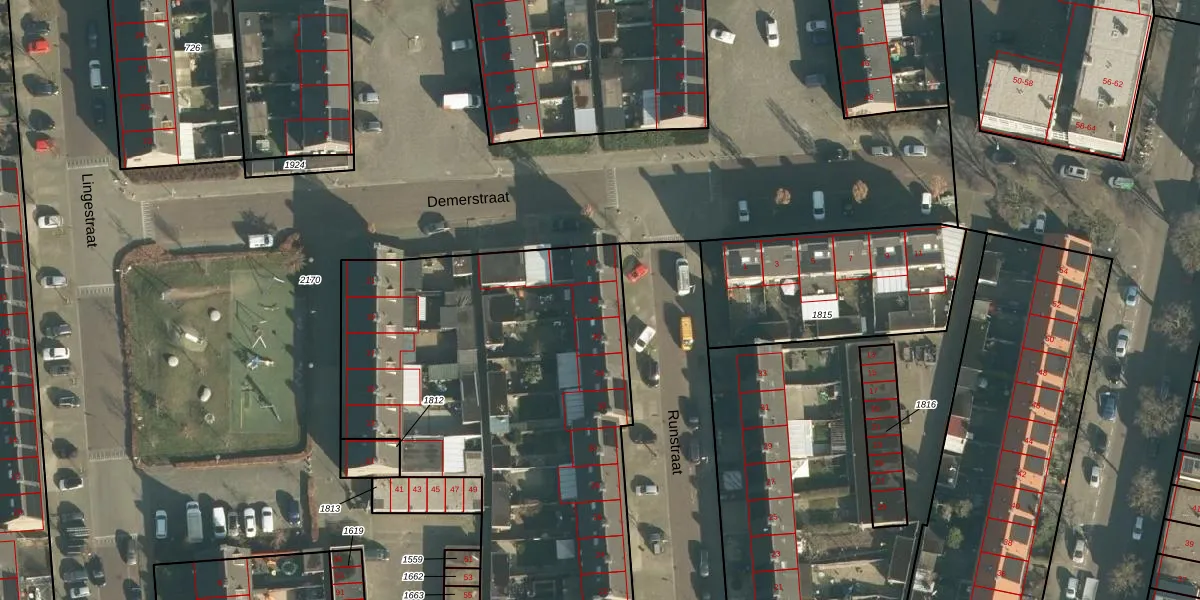 Het perceel waarop Runstraat 38 staat heeft een oppervlakte van 4745 m². Dit is een zeer groot perceel. De perceeloppervlakte wordt geregistreerd door het Kadaster. Gedetailleerde informatie over de maten van dit perceel kunt u vinden in het rapport Kadastrale kaart met maatvoering van Runstraat 38.