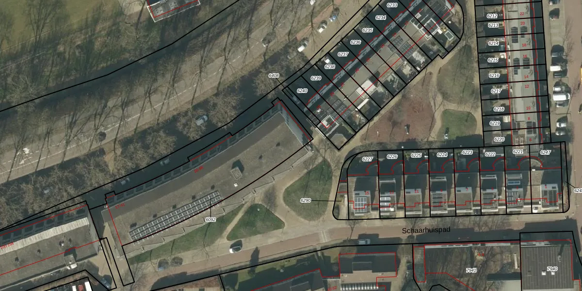 Schaarhuispad 19 is gelegen op kadastraal perceel HTG00O6092. Deze kadastrale aanduiding is uniek en wordt gebruikt door het Kadaster om eigendomsrechten en andere zakelijke rechten vast te leggen. Het perceel maakt onderdeel uit van de kadastrale gemeente 's-Hertogenbosch.