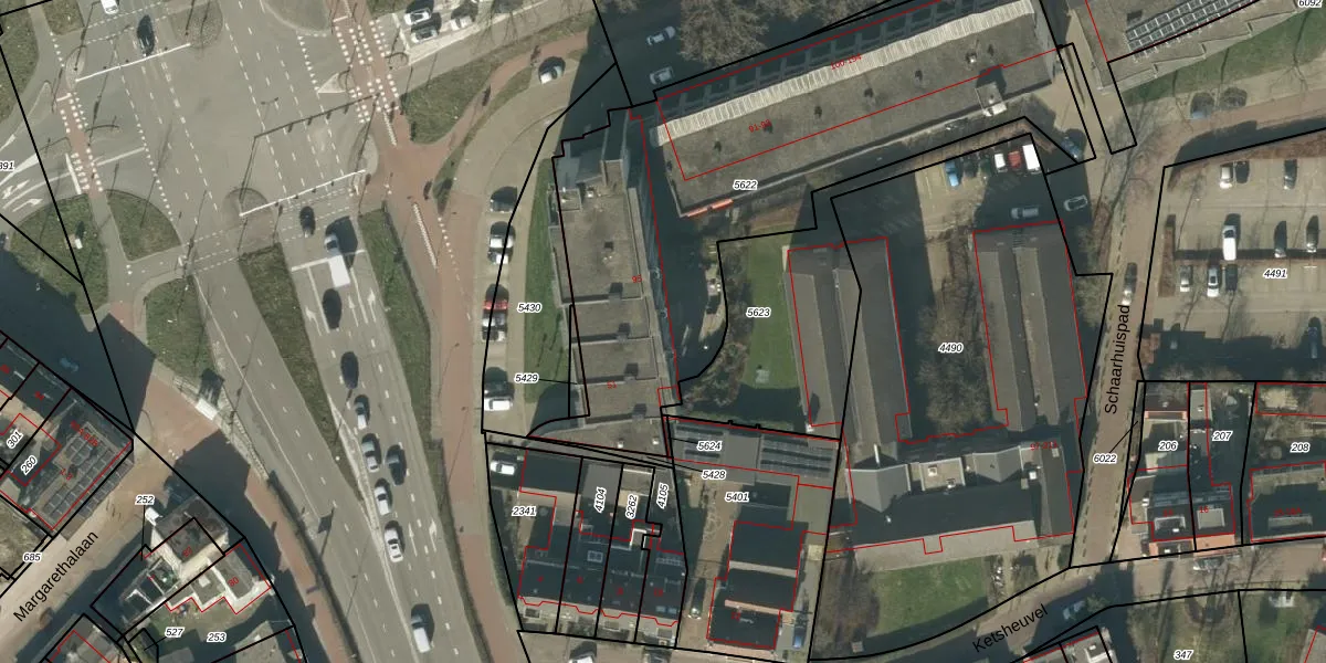 Schaarhuispad 95 is gelegen op kadastraal perceel HTG00O5622. Deze kadastrale aanduiding is uniek en wordt gebruikt door het Kadaster om eigendomsrechten en andere zakelijke rechten vast te leggen. Het perceel maakt onderdeel uit van de kadastrale gemeente 's-Hertogenbosch.