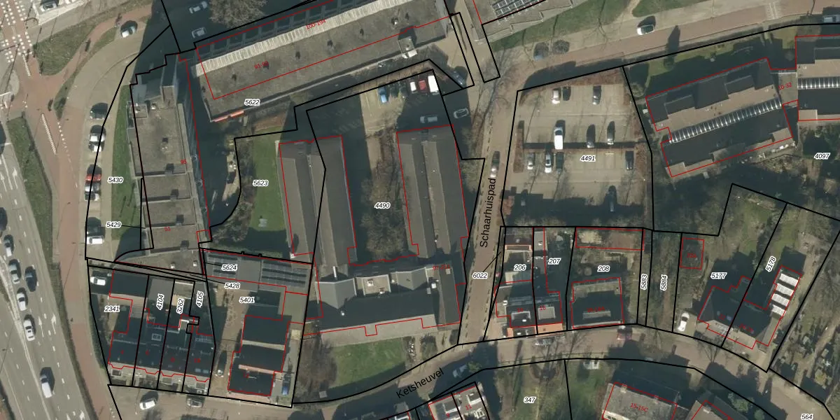 Schaarhuispad 99 is gelegen op kadastraal perceel HTG00O4490. Deze kadastrale aanduiding is uniek en wordt gebruikt door het Kadaster om eigendomsrechten en andere zakelijke rechten vast te leggen. Het perceel maakt onderdeel uit van de kadastrale gemeente 's-Hertogenbosch.