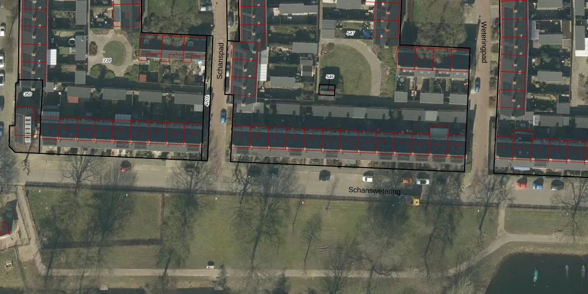 Het perceel waarop Schanswetering 68 staat heeft een oppervlakte van 6181 m². Dit is een zeer groot perceel. De perceeloppervlakte wordt geregistreerd door het Kadaster. Gedetailleerde informatie over de maten van dit perceel kunt u vinden in het rapport Kadastrale kaart met maatvoering van Schanswetering 68.