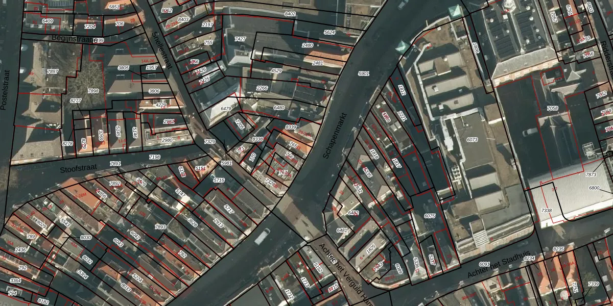 Het perceel waarop Schapenmarkt 33 staat heeft een oppervlakte van 65 m². Dit is een klein perceel. De perceeloppervlakte wordt geregistreerd door het Kadaster. Gedetailleerde informatie over de maten van dit perceel kunt u vinden in het rapport Kadastrale kaart met maatvoering van Schapenmarkt 33.