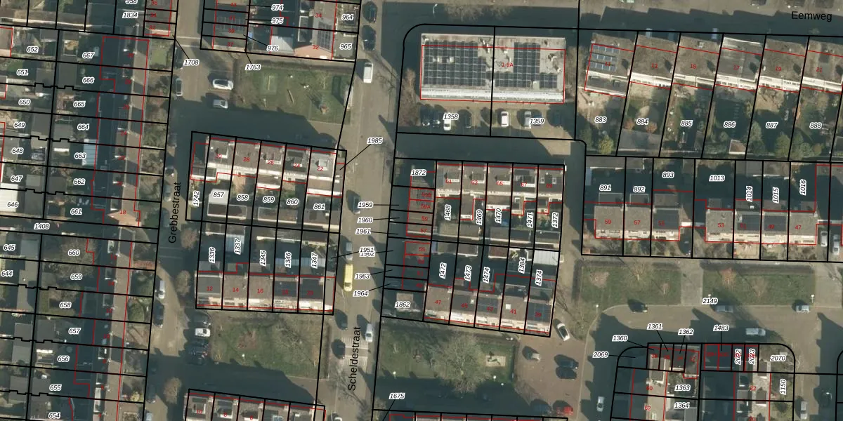 Het perceel waarop Scheldestraat 59-A staat heeft een oppervlakte van 60 m². Dit is een klein perceel. De perceeloppervlakte wordt geregistreerd door het Kadaster. Gedetailleerde informatie over de maten van dit perceel kunt u vinden in het rapport Kadastrale kaart met maatvoering van Scheldestraat 59-A.