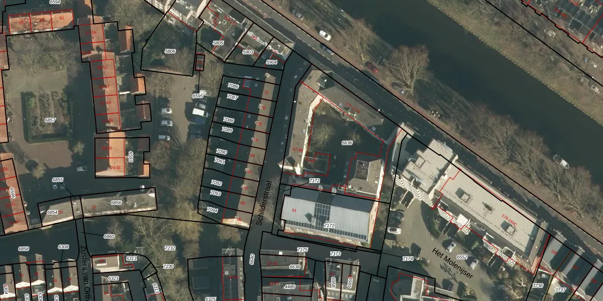 Het perceel waarop Schilderstraat 77 staat heeft een oppervlakte van 1240 m². Dit is een zeer groot perceel. De perceeloppervlakte wordt geregistreerd door het Kadaster. Gedetailleerde informatie over de maten van dit perceel kunt u vinden in het rapport Kadastrale kaart met maatvoering van Schilderstraat 77.