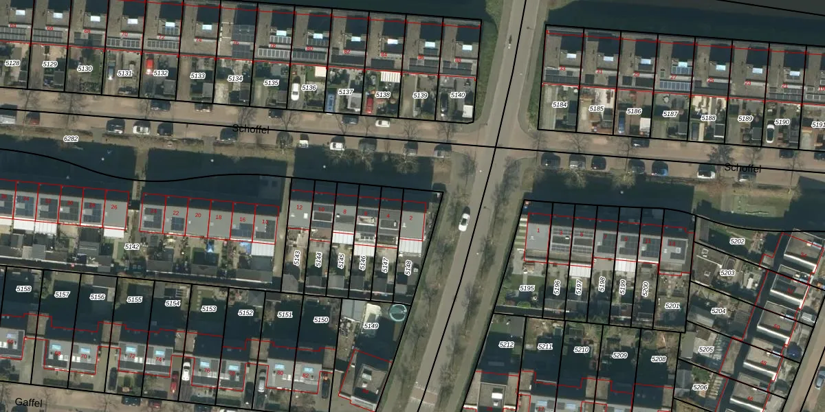 Het perceel waarop Schoffel 2 staat heeft een oppervlakte van 201 m². Dit is een middelgroot perceel. De perceeloppervlakte wordt geregistreerd door het Kadaster. Gedetailleerde informatie over de maten van dit perceel kunt u vinden in het rapport Kadastrale kaart met maatvoering van Schoffel 2.