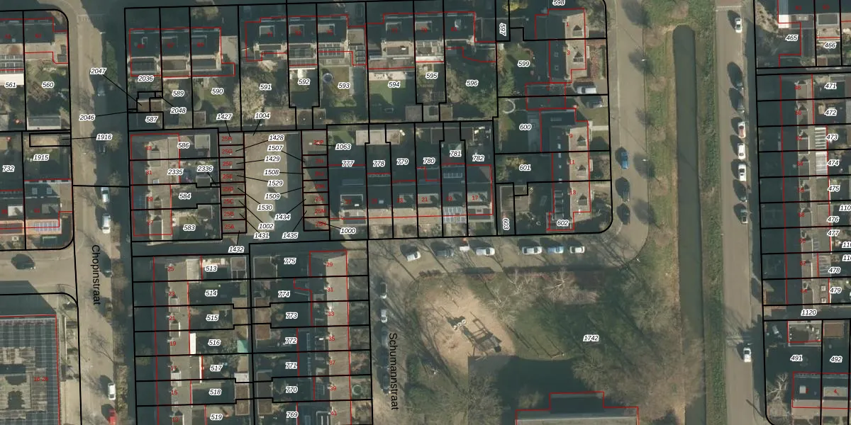 Gebruik de zoekbalk of klik op een perceel voor informatie over de adressen binnen dit perceel.