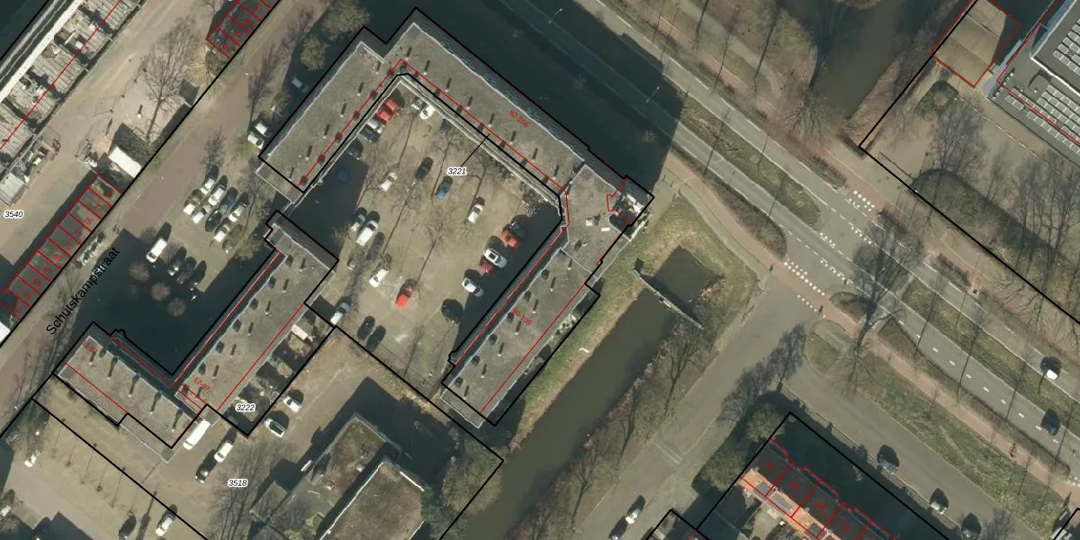 Het perceel waarop Schutskampstraat 109 staat heeft een oppervlakte van 1455 m². Dit is een zeer groot perceel. De perceeloppervlakte wordt geregistreerd door het Kadaster. Gedetailleerde informatie over de maten van dit perceel kunt u vinden in het rapport Kadastrale kaart met maatvoering van Schutskampstraat 109.