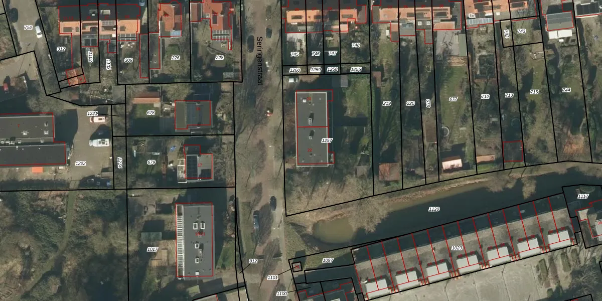 Het perceel waarop Seringenstraat 22 staat heeft een oppervlakte van 1262 m². Dit is een zeer groot perceel. De perceeloppervlakte wordt geregistreerd door het Kadaster. Gedetailleerde informatie over de maten van dit perceel kunt u vinden in het rapport Kadastrale kaart met maatvoering van Seringenstraat 22.