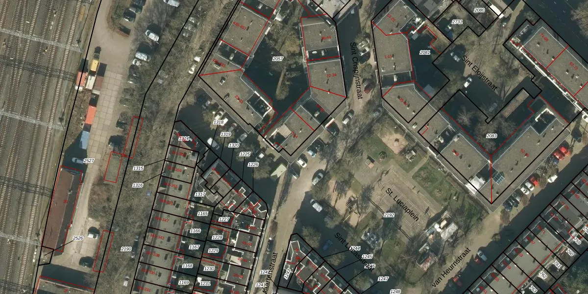 Het perceel waarop Sint Crispijnstraat 2 staat heeft een oppervlakte van 1958 m². Dit is een zeer groot perceel. De perceeloppervlakte wordt geregistreerd door het Kadaster. Gedetailleerde informatie over de maten van dit perceel kunt u vinden in het rapport Kadastrale kaart met maatvoering van Sint Crispijnstraat 2.