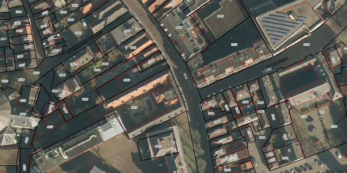 Het perceel waarop Sint Jorisstraat 25 staat heeft een oppervlakte van 1595 m². Dit is een zeer groot perceel. De perceeloppervlakte wordt geregistreerd door het Kadaster. Gedetailleerde informatie over de maten van dit perceel kunt u vinden in het rapport Kadastrale kaart met maatvoering van Sint Jorisstraat 25.