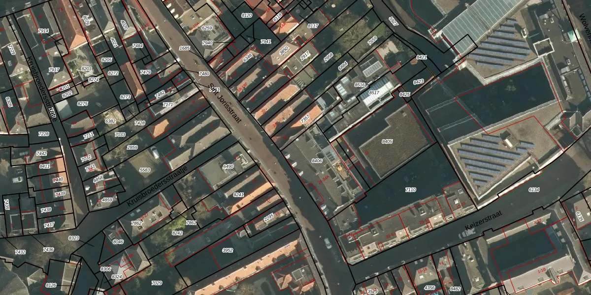 Het perceel waarop Sint Jorisstraat 28 staat heeft een oppervlakte van 504 m². Dit is een groot perceel. De perceeloppervlakte wordt geregistreerd door het Kadaster. Gedetailleerde informatie over de maten van dit perceel kunt u vinden in het rapport Kadastrale kaart met maatvoering van Sint Jorisstraat 28.