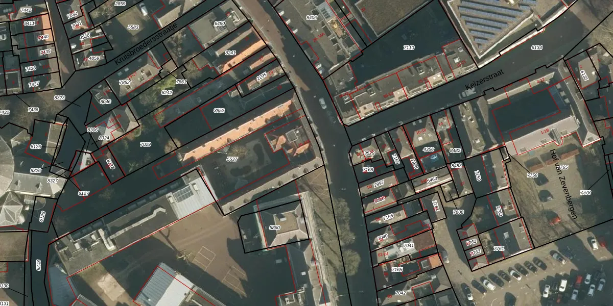 Het perceel waarop Sint Jorisstraat 59 staat heeft een oppervlakte van 1595 m². Dit is een zeer groot perceel. De perceeloppervlakte wordt geregistreerd door het Kadaster. Gedetailleerde informatie over de maten van dit perceel kunt u vinden in het rapport Kadastrale kaart met maatvoering van Sint Jorisstraat 59.