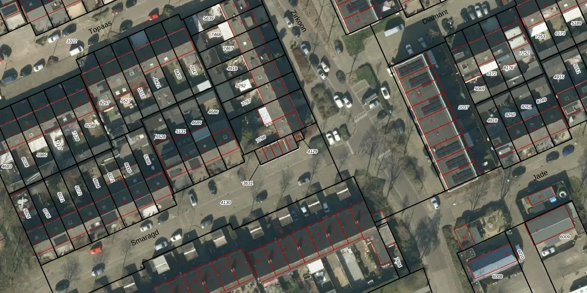 Het perceel waarop Smaragd 1 staat heeft een oppervlakte van 77 m². Dit is een klein perceel. De perceeloppervlakte wordt geregistreerd door het Kadaster. Gedetailleerde informatie over de maten van dit perceel kunt u vinden in het rapport Kadastrale kaart met maatvoering van Smaragd 1.
