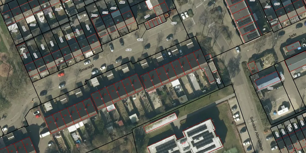 Het perceel waarop Smaragd 14 staat heeft een oppervlakte van 8780 m². Dit is een zeer groot perceel. De perceeloppervlakte wordt geregistreerd door het Kadaster. Gedetailleerde informatie over de maten van dit perceel kunt u vinden in het rapport Kadastrale kaart met maatvoering van Smaragd 14.