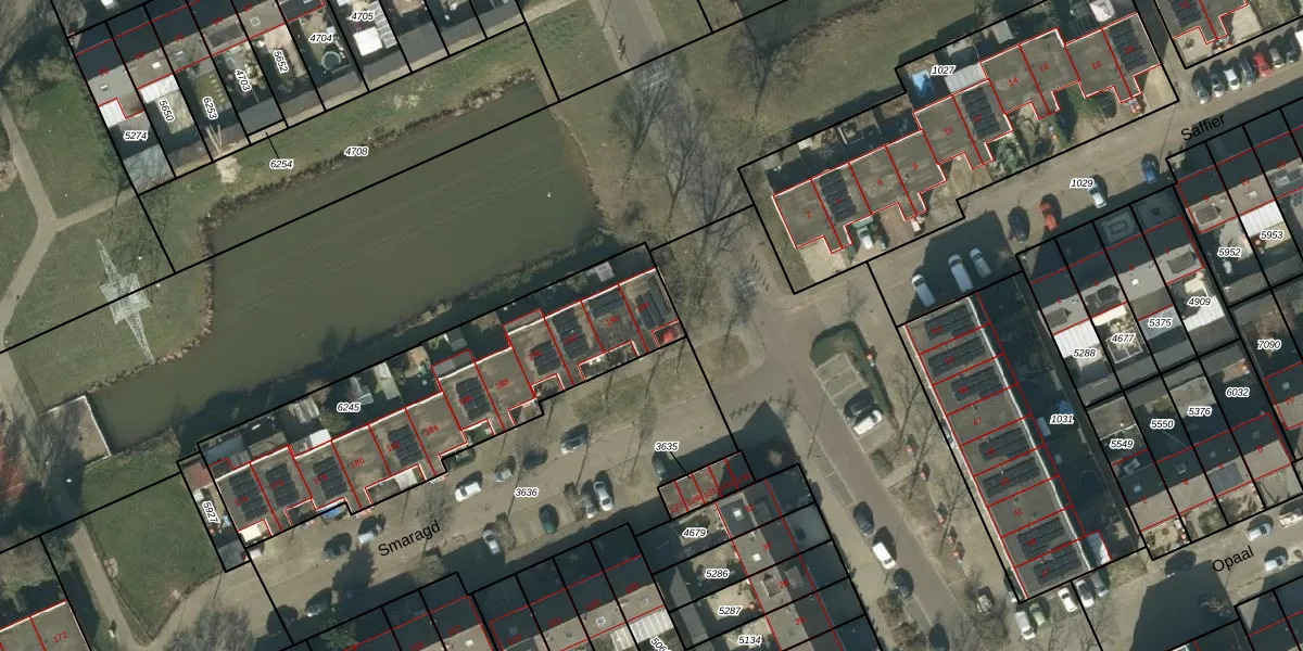 Het perceel waarop Smaragd 196 staat heeft een oppervlakte van 1331 m². Dit is een zeer groot perceel. De perceeloppervlakte wordt geregistreerd door het Kadaster. Gedetailleerde informatie over de maten van dit perceel kunt u vinden in het rapport Kadastrale kaart met maatvoering van Smaragd 196.