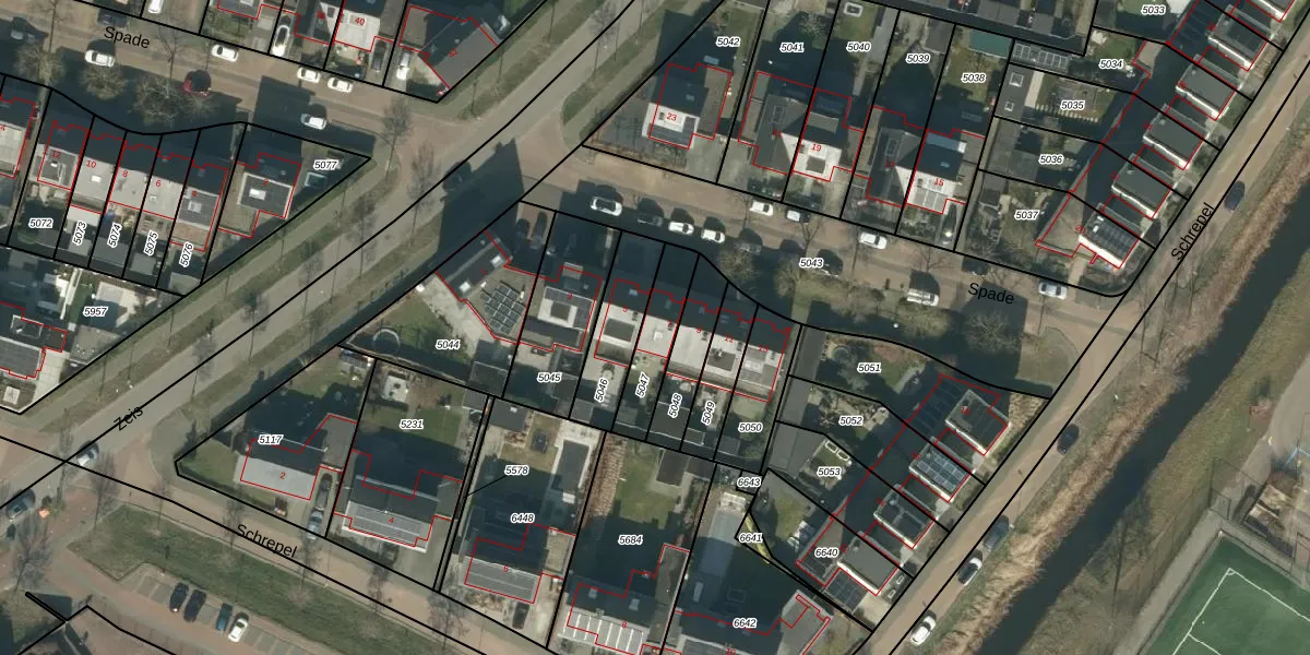 Gebruik de zoekbalk of klik op een perceel voor informatie over de adressen binnen dit perceel.