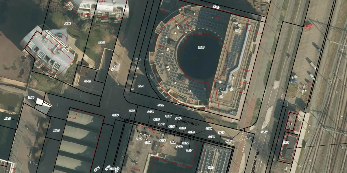 Het perceel waarop Spiegeltuin 31 staat heeft een oppervlakte van 3502 m². Dit is een zeer groot perceel. De perceeloppervlakte wordt geregistreerd door het Kadaster. Gedetailleerde informatie over de maten van dit perceel kunt u vinden in het rapport Kadastrale kaart met maatvoering van Spiegeltuin 31.