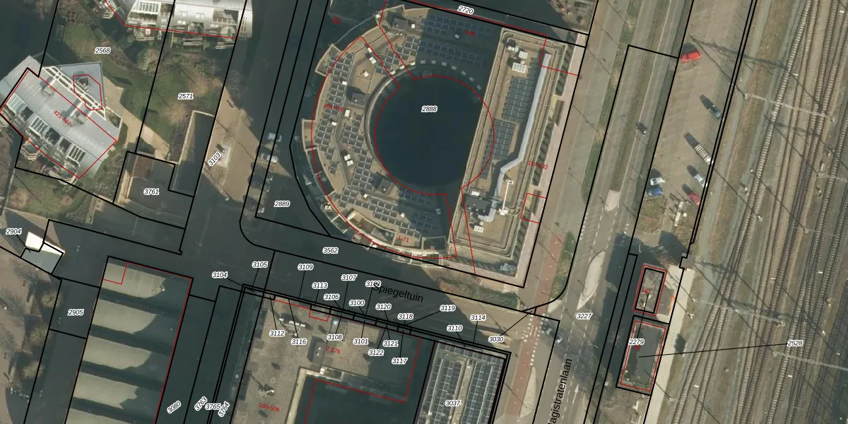 Het perceel waarop Spiegeltuin 59 staat heeft een oppervlakte van 3502 m². Dit is een zeer groot perceel. De perceeloppervlakte wordt geregistreerd door het Kadaster. Gedetailleerde informatie over de maten van dit perceel kunt u vinden in het rapport Kadastrale kaart met maatvoering van Spiegeltuin 59.