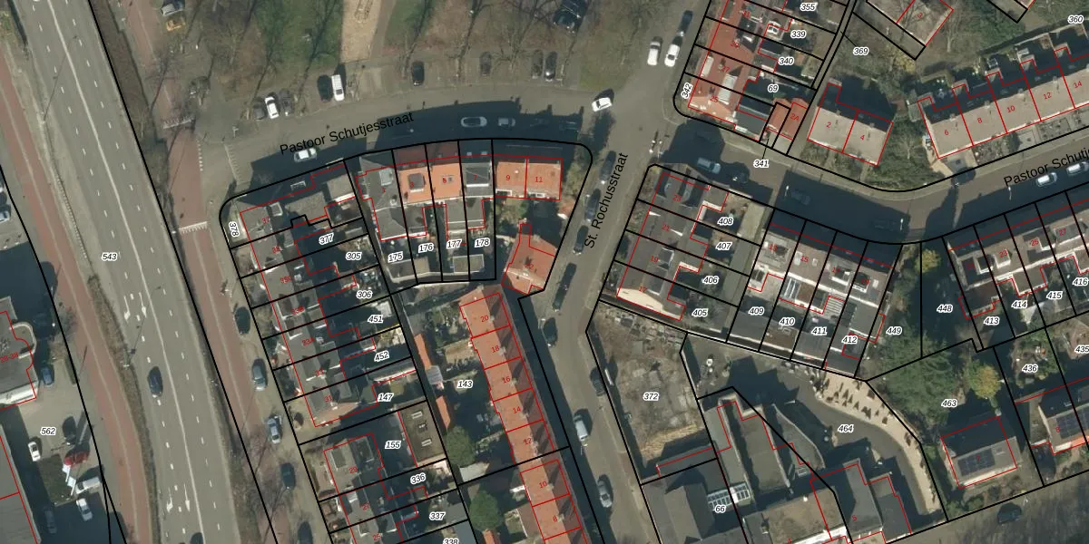 Het perceel waarop St. Rochusstraat 22 staat heeft een oppervlakte van 1162 m². Dit is een zeer groot perceel. De perceeloppervlakte wordt geregistreerd door het Kadaster. Gedetailleerde informatie over de maten van dit perceel kunt u vinden in het rapport Kadastrale kaart met maatvoering van St. Rochusstraat 22.