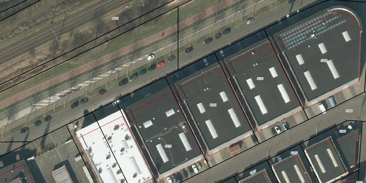 Stadionlaan 161 is gelegen op kadastraal perceel RML00E5241. Deze kadastrale aanduiding is uniek en wordt gebruikt door het Kadaster om eigendomsrechten en andere zakelijke rechten vast te leggen. Het perceel maakt onderdeel uit van de kadastrale gemeente Rosmalen.