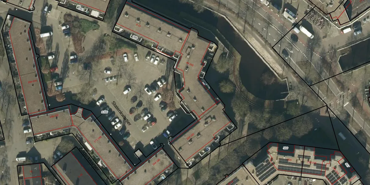 Het perceel waarop Statenkwartier 104 staat heeft een oppervlakte van 2114 m². Dit is een zeer groot perceel. De perceeloppervlakte wordt geregistreerd door het Kadaster. Gedetailleerde informatie over de maten van dit perceel kunt u vinden in het rapport Kadastrale kaart met maatvoering van Statenkwartier 104.