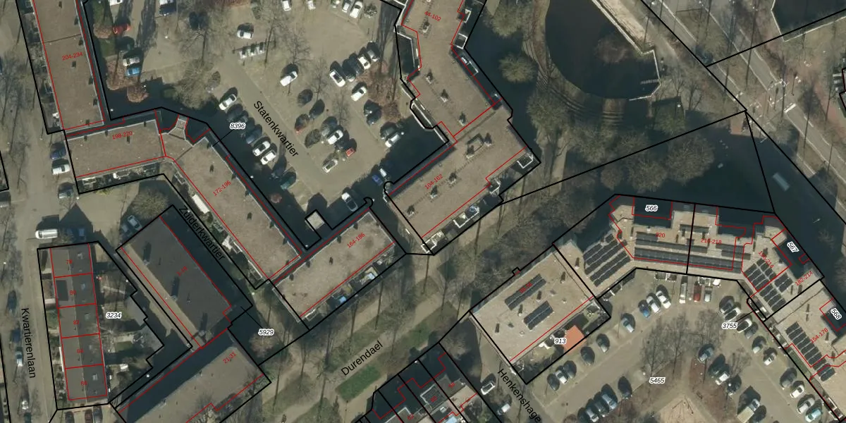 Het perceel waarop Statenkwartier 140 staat heeft een oppervlakte van 2114 m². Dit is een zeer groot perceel. De perceeloppervlakte wordt geregistreerd door het Kadaster. Gedetailleerde informatie over de maten van dit perceel kunt u vinden in het rapport Kadastrale kaart met maatvoering van Statenkwartier 140.