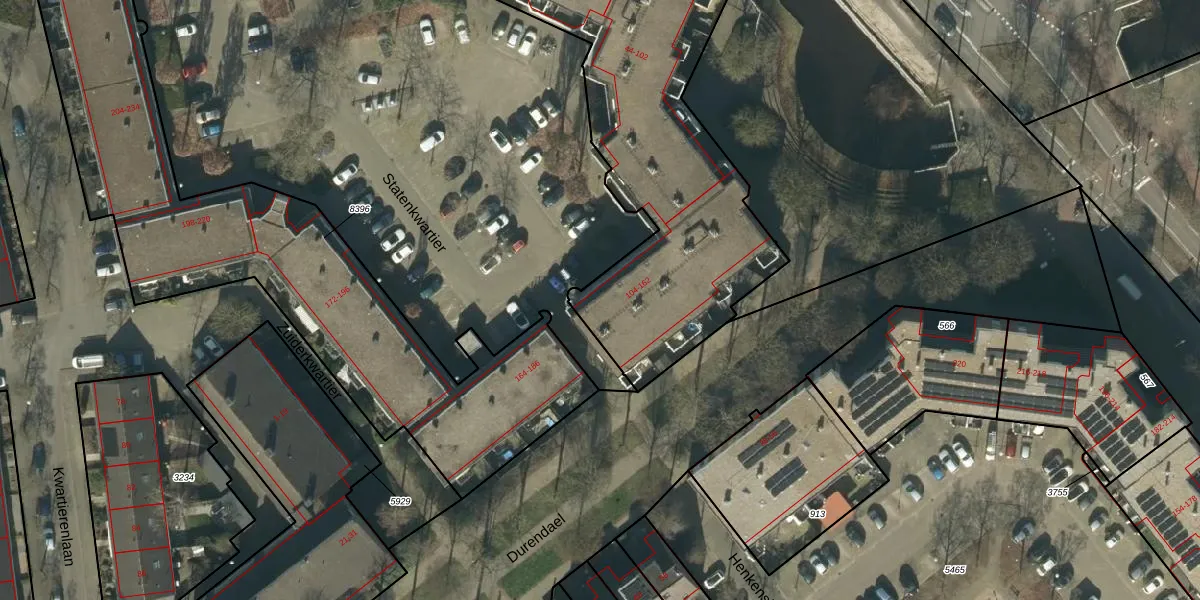Het perceel waarop Statenkwartier 162 staat heeft een oppervlakte van 2114 m². Dit is een zeer groot perceel. De perceeloppervlakte wordt geregistreerd door het Kadaster. Gedetailleerde informatie over de maten van dit perceel kunt u vinden in het rapport Kadastrale kaart met maatvoering van Statenkwartier 162.