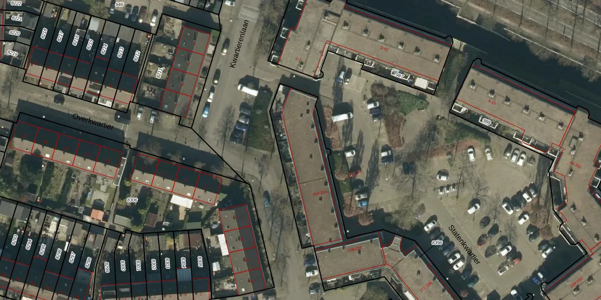 Het perceel waarop Statenkwartier 212 staat heeft een oppervlakte van 2255 m². Dit is een zeer groot perceel. De perceeloppervlakte wordt geregistreerd door het Kadaster. Gedetailleerde informatie over de maten van dit perceel kunt u vinden in het rapport Kadastrale kaart met maatvoering van Statenkwartier 212.
