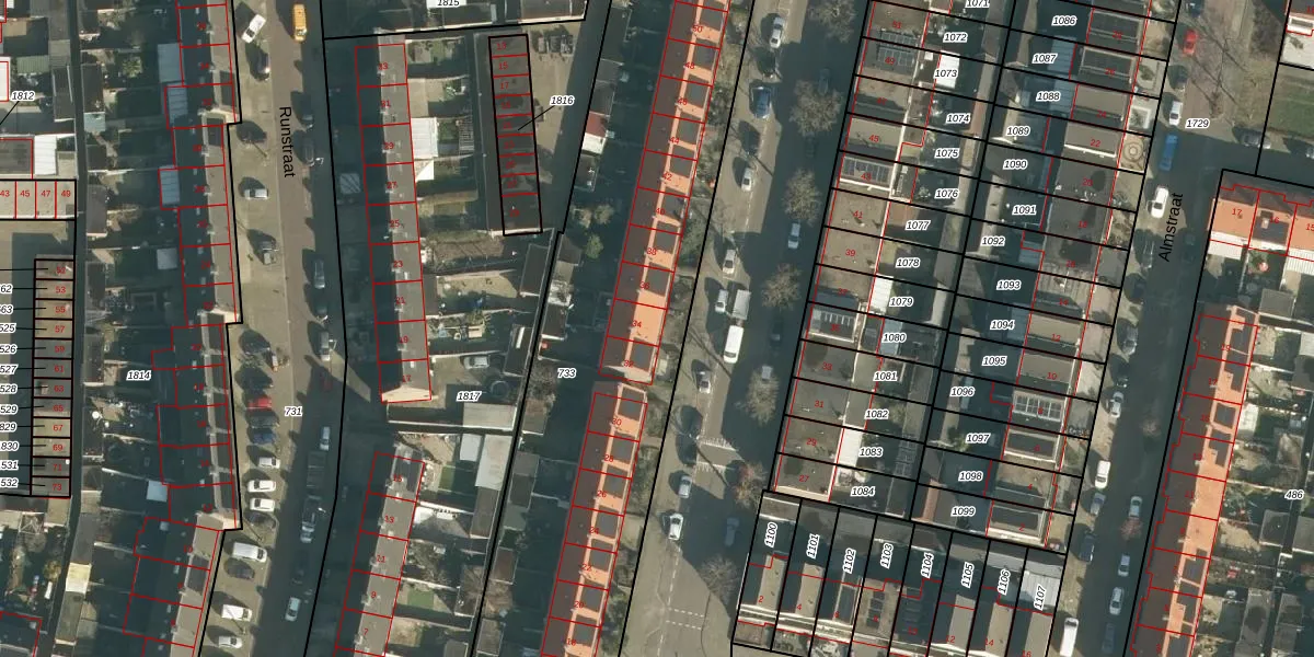 Het perceel waarop Sumatrastraat 34 staat heeft een oppervlakte van 2845 m². Dit is een zeer groot perceel. De perceeloppervlakte wordt geregistreerd door het Kadaster. Gedetailleerde informatie over de maten van dit perceel kunt u vinden in het rapport Kadastrale kaart met maatvoering van Sumatrastraat 34.