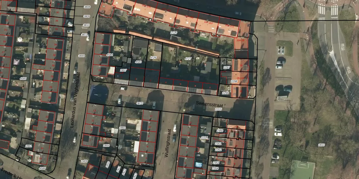 Het perceel waarop Sweensstraat 5 staat heeft een oppervlakte van 797 m². Dit is een groot perceel. De perceeloppervlakte wordt geregistreerd door het Kadaster. Gedetailleerde informatie over de maten van dit perceel kunt u vinden in het rapport Kadastrale kaart met maatvoering van Sweensstraat 5.