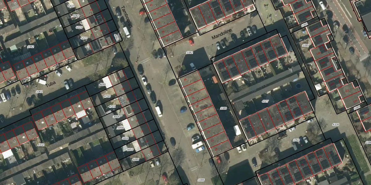 Het perceel waarop Tamboerijn 33 staat heeft een oppervlakte van 988 m². Dit is een groot perceel. De perceeloppervlakte wordt geregistreerd door het Kadaster. Gedetailleerde informatie over de maten van dit perceel kunt u vinden in het rapport Kadastrale kaart met maatvoering van Tamboerijn 33.