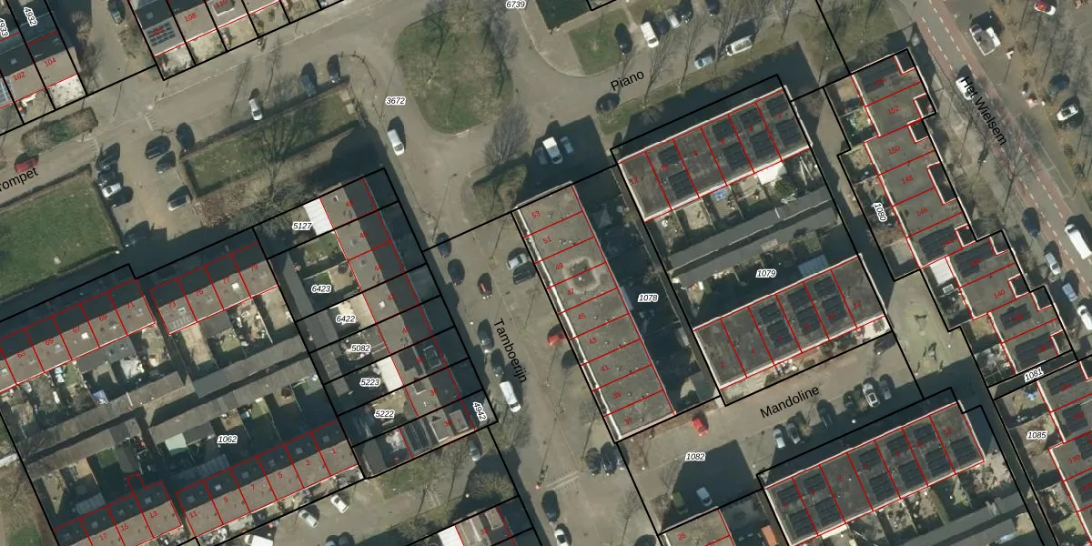 Het perceel waarop Tamboerijn 49 staat heeft een oppervlakte van 995 m². Dit is een groot perceel. De perceeloppervlakte wordt geregistreerd door het Kadaster. Gedetailleerde informatie over de maten van dit perceel kunt u vinden in het rapport Kadastrale kaart met maatvoering van Tamboerijn 49.