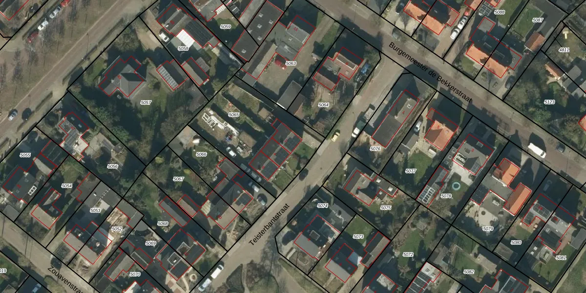 Het perceel waarop Teisterbantstraat 2 staat heeft een oppervlakte van 975 m². Dit is een groot perceel. De perceeloppervlakte wordt geregistreerd door het Kadaster. Gedetailleerde informatie over de maten van dit perceel kunt u vinden in het rapport Kadastrale kaart met maatvoering van Teisterbantstraat 2.
