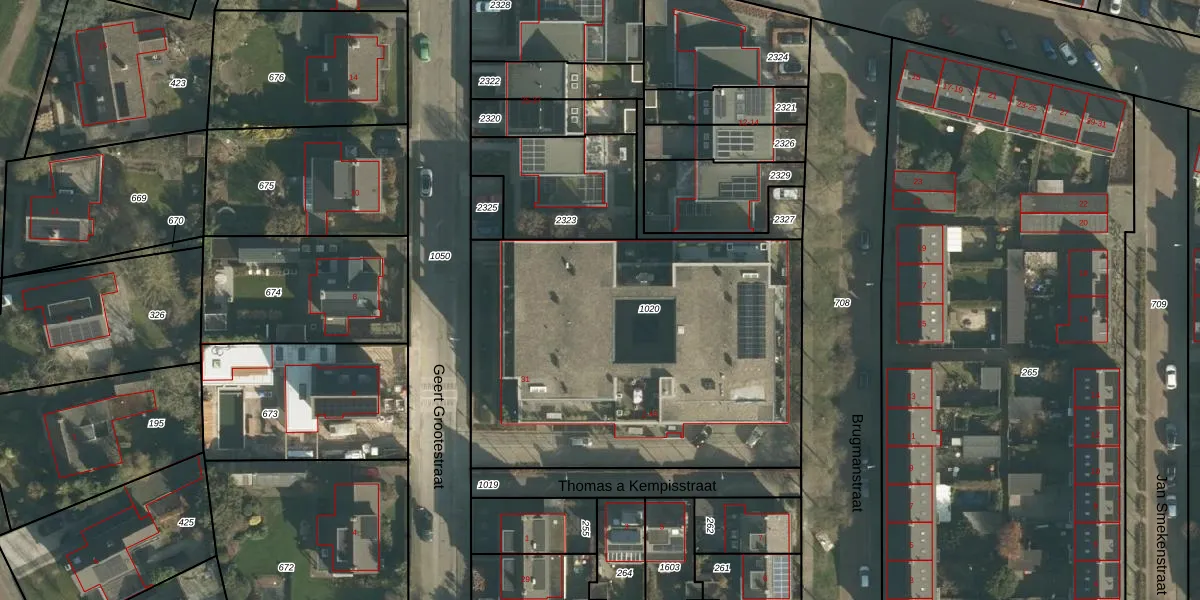 Het perceel waarop Thomas a Kempisstraat 12 staat heeft een oppervlakte van 2100 m². Dit is een zeer groot perceel. De perceeloppervlakte wordt geregistreerd door het Kadaster. Gedetailleerde informatie over de maten van dit perceel kunt u vinden in het rapport Kadastrale kaart met maatvoering van Thomas a Kempisstraat 12.