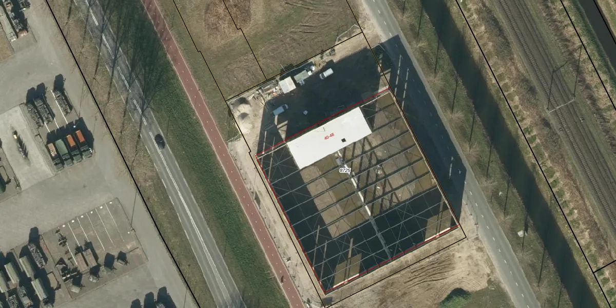 Het perceel waarop Titaniumlaan 40 staat heeft een oppervlakte van 3779 m². Dit is een zeer groot perceel. De perceeloppervlakte wordt geregistreerd door het Kadaster. Gedetailleerde informatie over de maten van dit perceel kunt u vinden in het rapport Kadastrale kaart met maatvoering van Titaniumlaan 40.